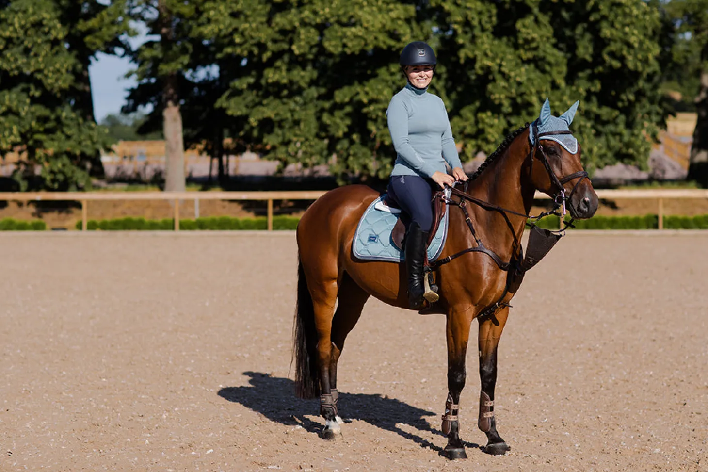 Die fantastische Springschabracke bereitet ein wirklich luxuriöses Gefühl, perfekt für das Training. Blau mit einem Grau Band und Weiß Kordeln eingefasst. Das Außenmaterial der Schabracke ist glänzend und schmutzabweisend mit schnelltrocknendem Stoff an der Innenseite. Sie passt perfekt zu unseren anderen Produkten der Steel blue Kollektion.