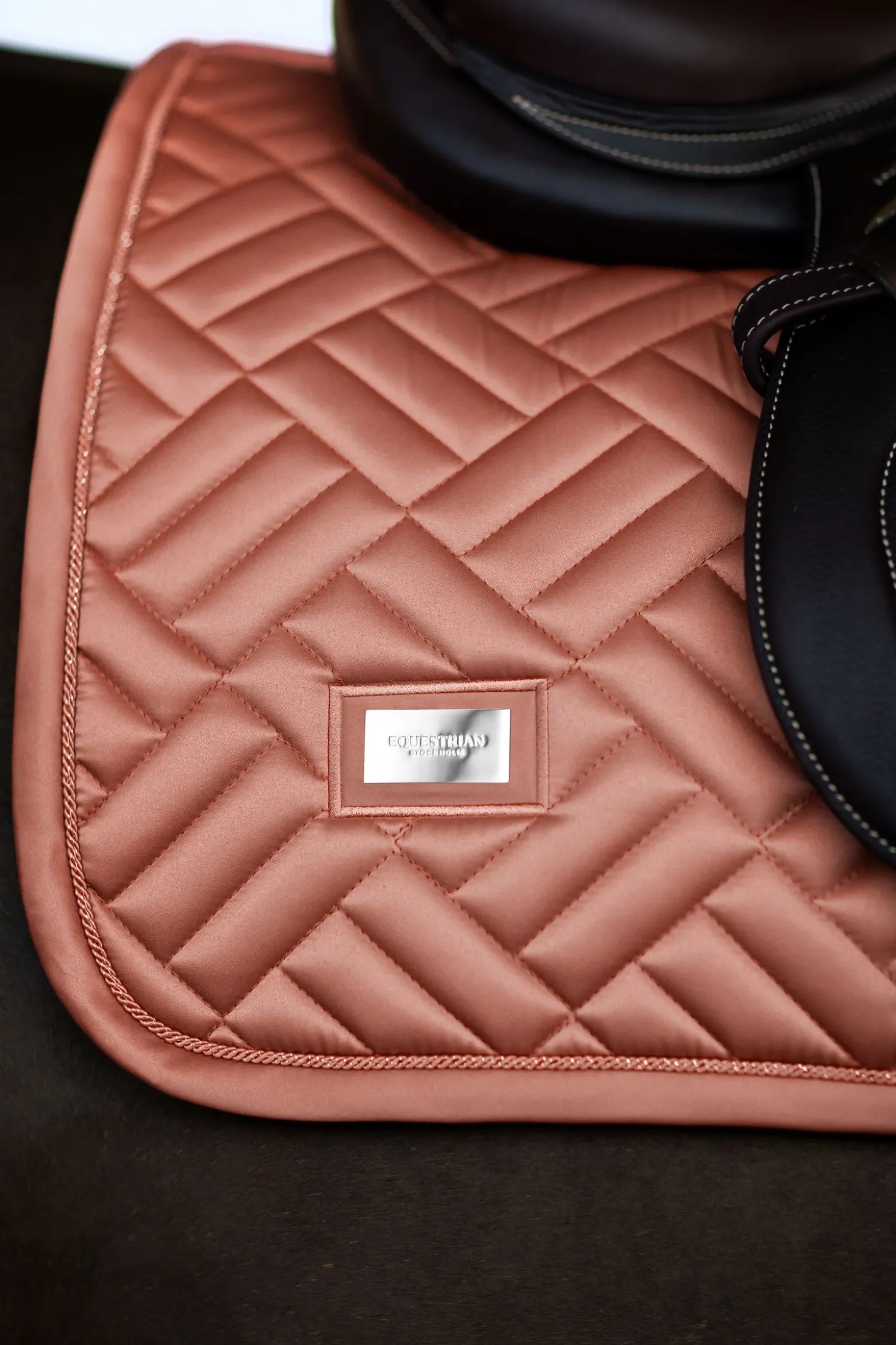 Details: Korallenrosa Einfassung mit silbernem Equestrian Stockholm Logo / Moderne Steppung