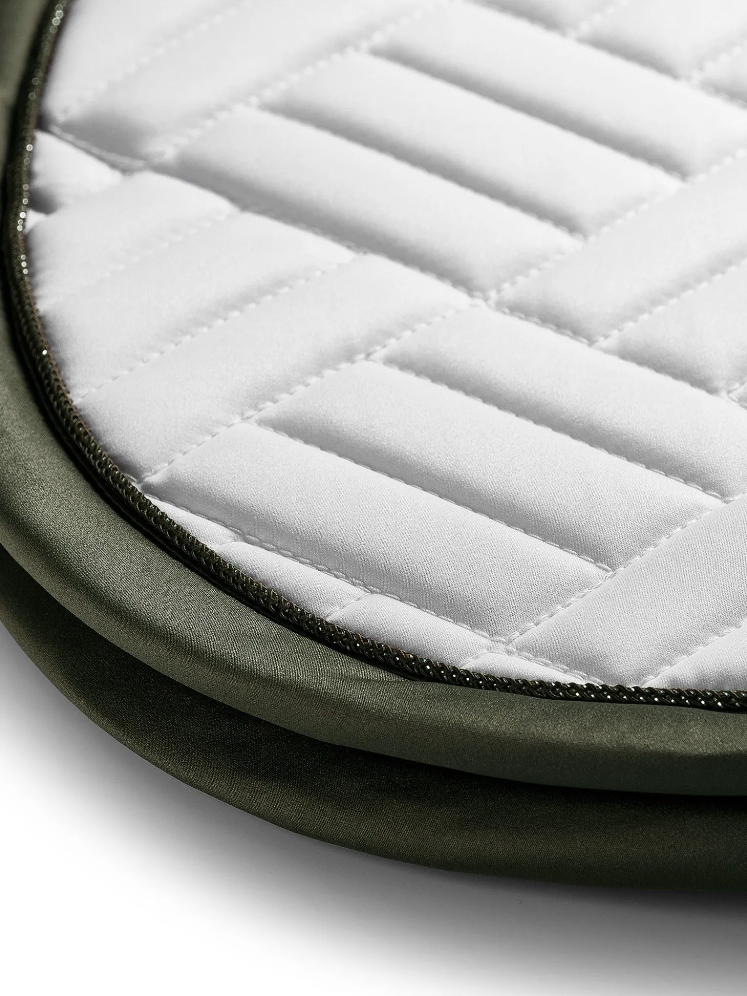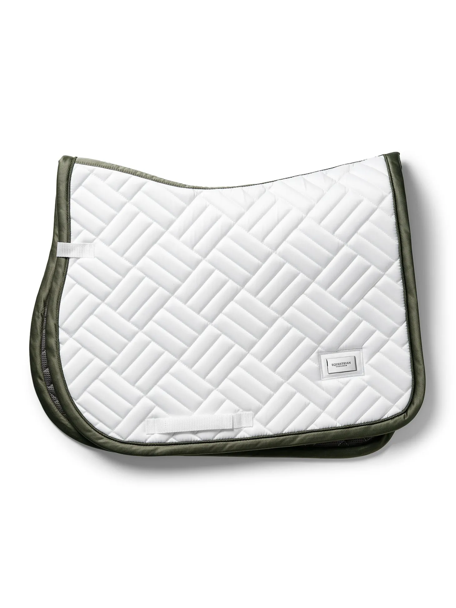 Elegante Schabracke mit moderner Steppung in Weiß mit olivgrünen und silbernen Details. Verziert mit dem Equestrian Stockholm Abzeichen in Silber. Das Bambusmaterial ist aufgrund seiner thermoregulierenden Wirkung das ganze Jahr über perfekt – kühlend im Sommer und wärmend im Winter. Außerdem ist es schnelltrocknend, feuchtigkeitsableitend und antibakteriell. Kombinieren Sie die Schabracke mit anderen Teilen aus der Striking Valley Kollektion für einen stilvollen Look von Kopf bis Fuß.