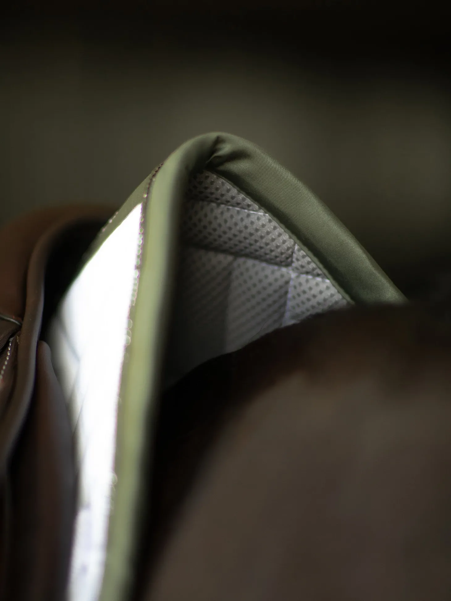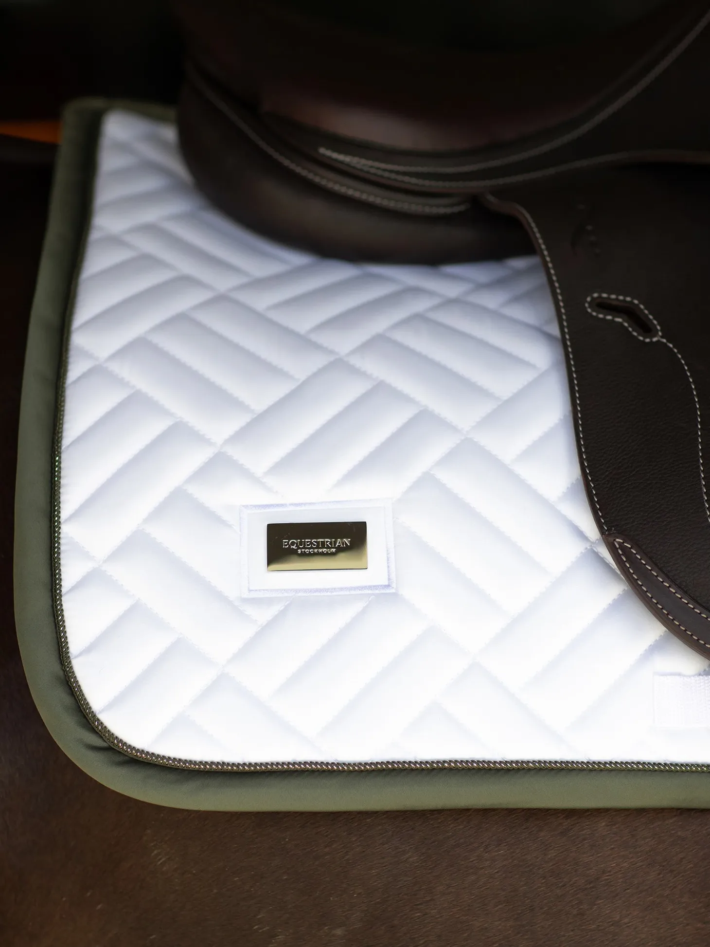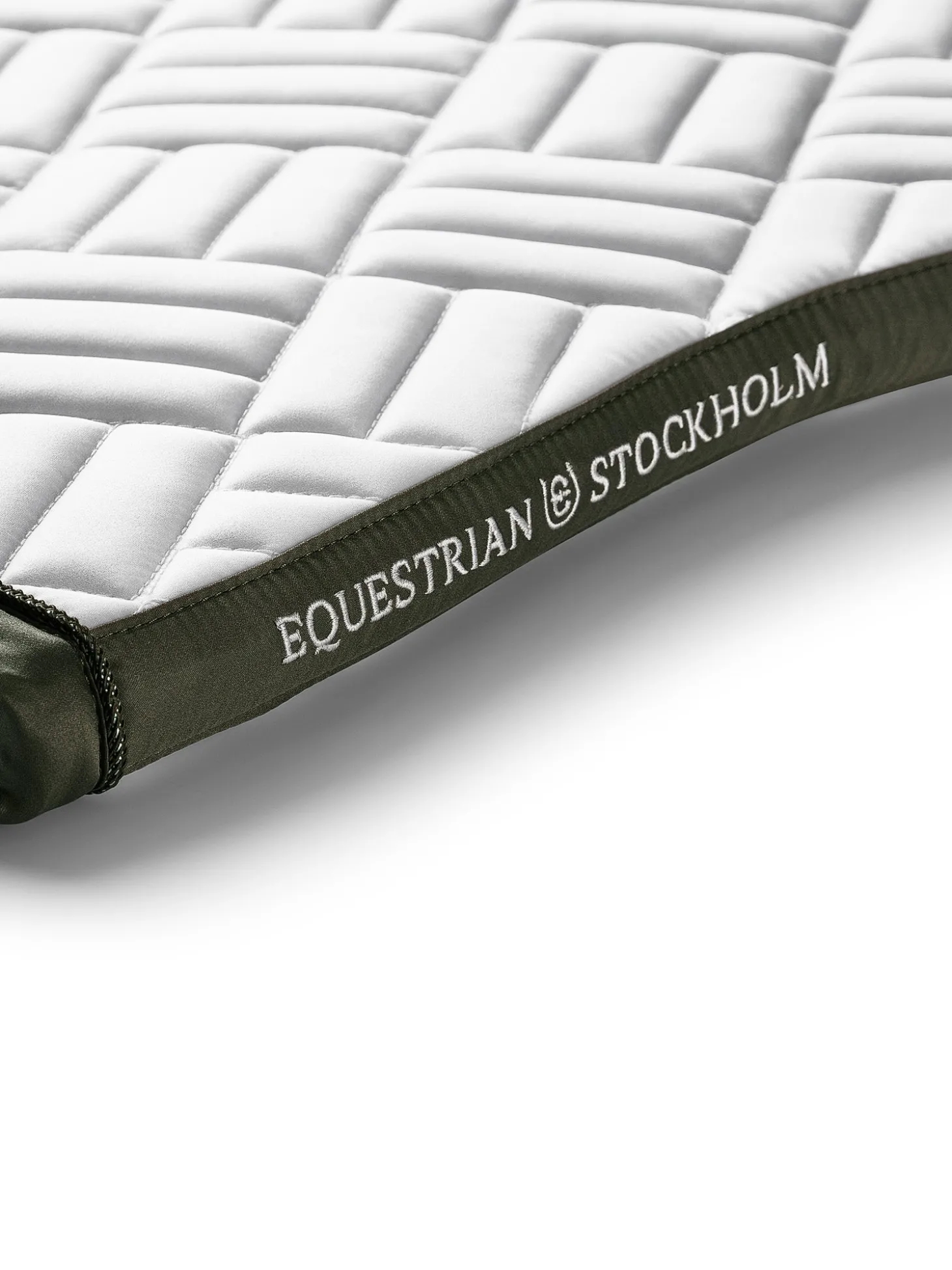 Details: Olivgrüne Borte mit silbernem Equestrian Stockholm Logo / Moderne Steppung