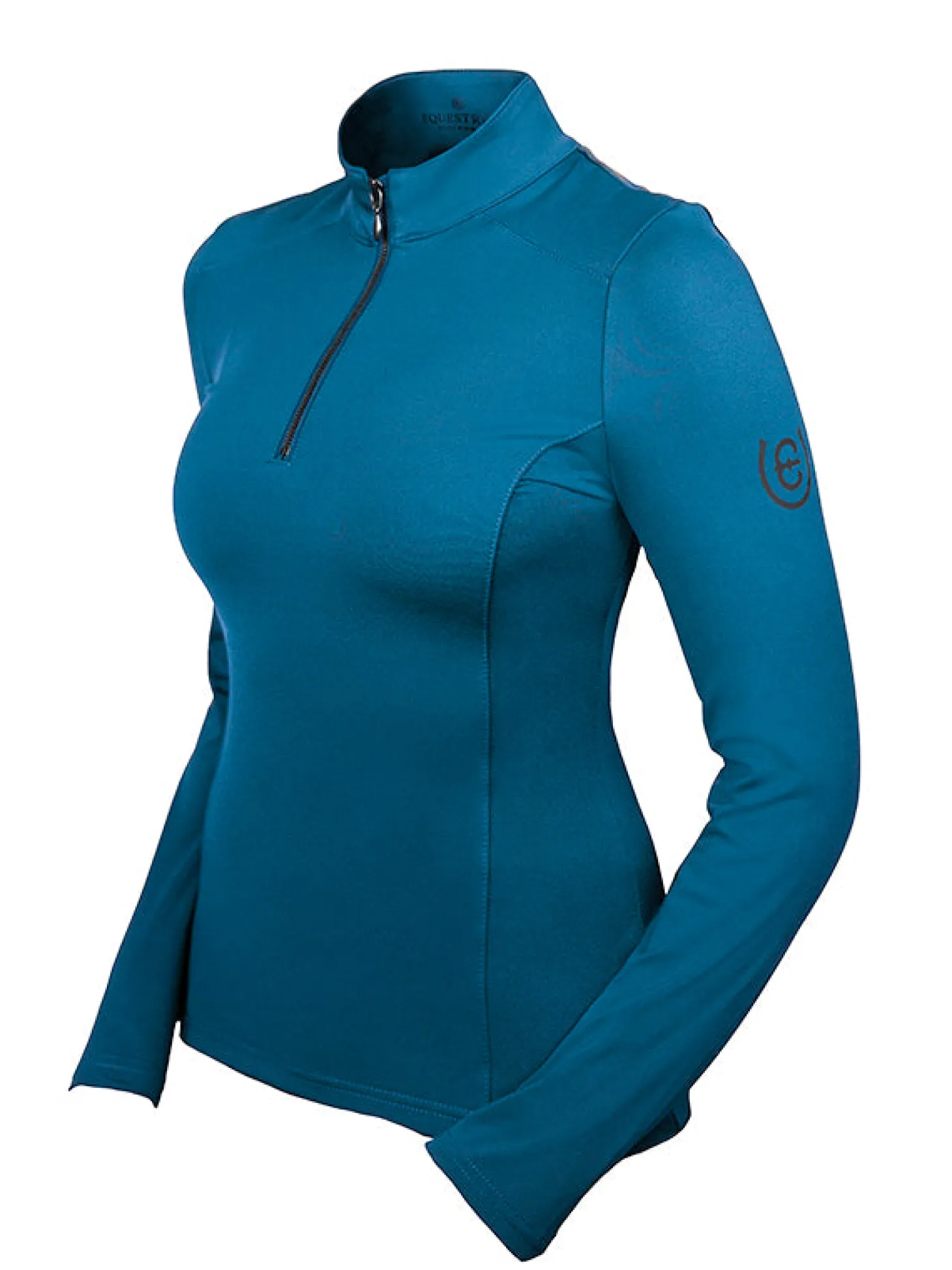 Exklusives und sportliches Vision Top in luxuriösem Blau mit schwarzen Details. Das Oberteil ist aus einer atmungsaktiven, recycelten Polyestermischung gefertigt und hat eine schmale Passform mit Mesh an den Seiten. Es ist mit einem vertikalen Equestrian Stockholm-Logo auf dem Rücken und einem kleineren Logo auf dem linken Arm verziert. Tragen Sie das Vision Top mit anderen Produkten aus der Blue Meadow Kollektion für einen kompletten Look.