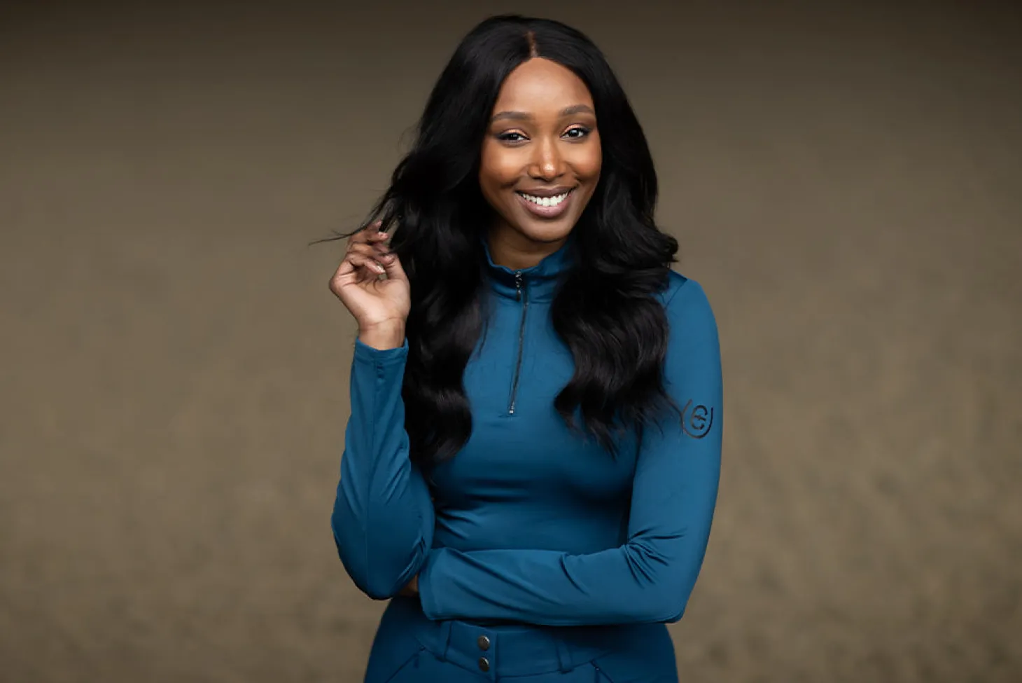 Details: Vertikales Equestrian Stockholm-Logo auf dem Rücken in Schwarz. Kleines schwarzes Equestrian Stockholm-Logo auf dem linken Arm.