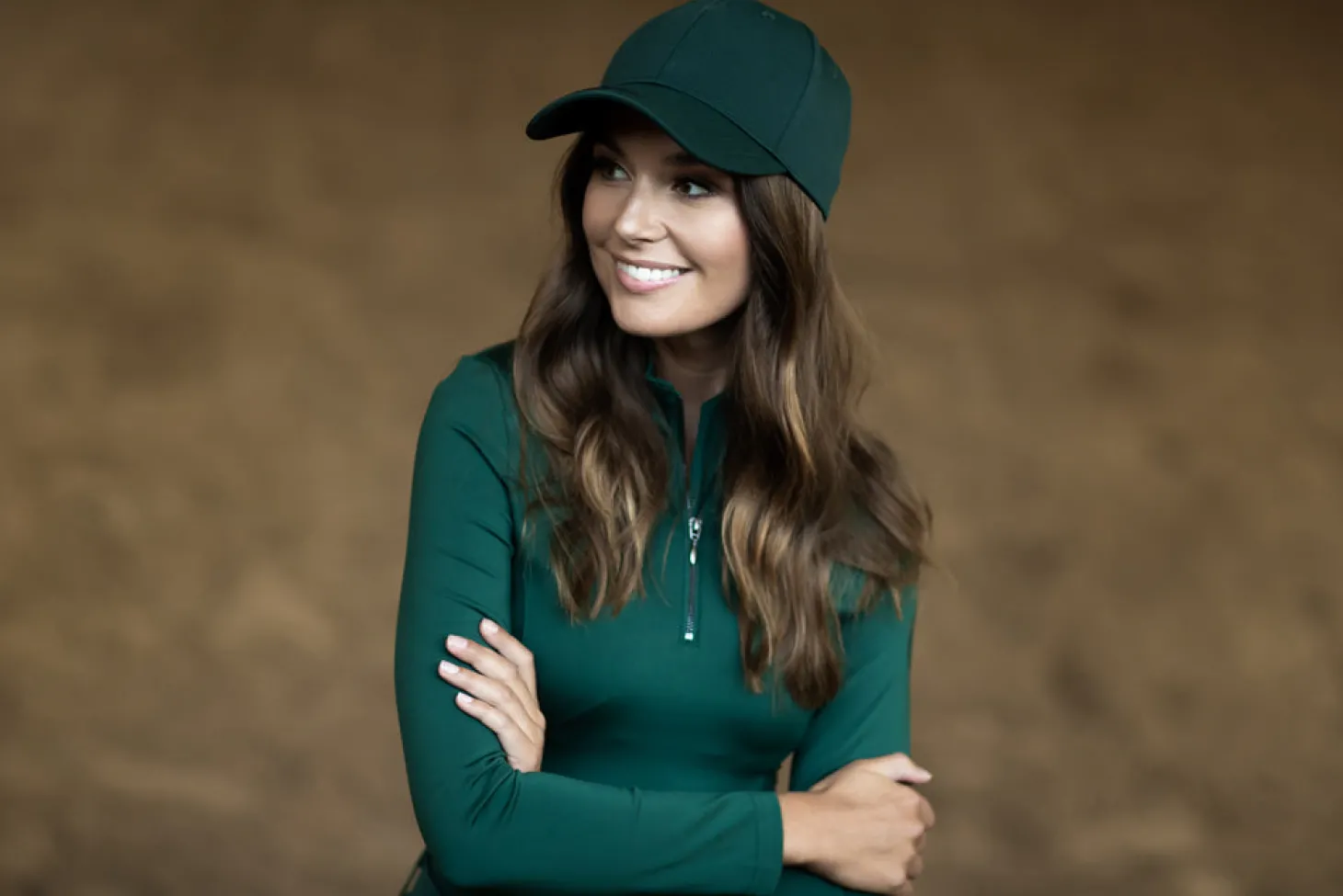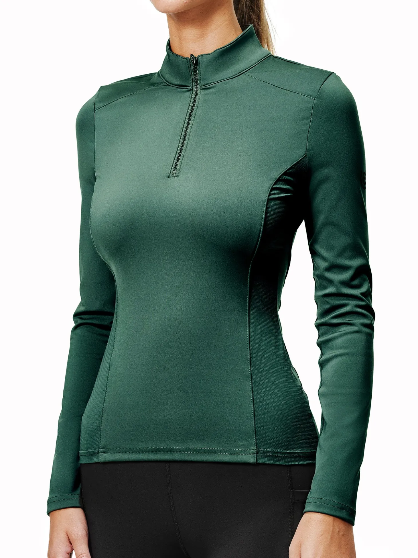 Exklusives und sportliches Vision Top in luxuriösem, coolem Dunkelgrün und mit schwarzen Details. Das Oberteil ist aus einer atmungsaktiven, recycelten Polyestermischung gefertigt und hat eine schmale Passform mit Mesh an den Seiten und am Ärmel unter dem Arm. Es ist mit einem vertikalen Equestrian Stockholm Logo auf dem Rücken und einem kleineren Logo auf dem linken Arm verziert. Tragen Sie das Top mit anderen Produkten aus der Sycamore Green Kollektion für einen kompletten Look.