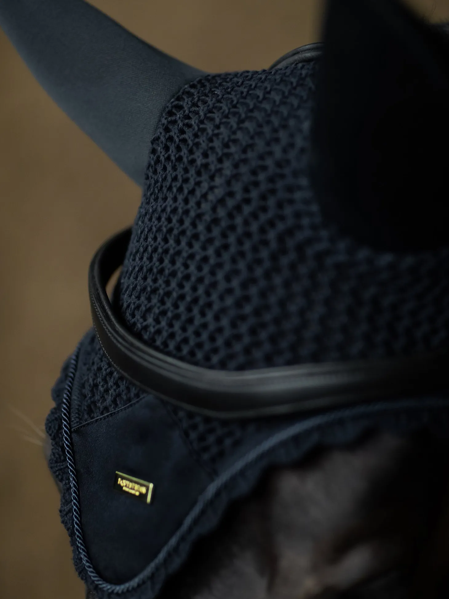 Gehäkelte Fliegenhaube mit wattierten Ohren – perfekt für sensible Pferde.